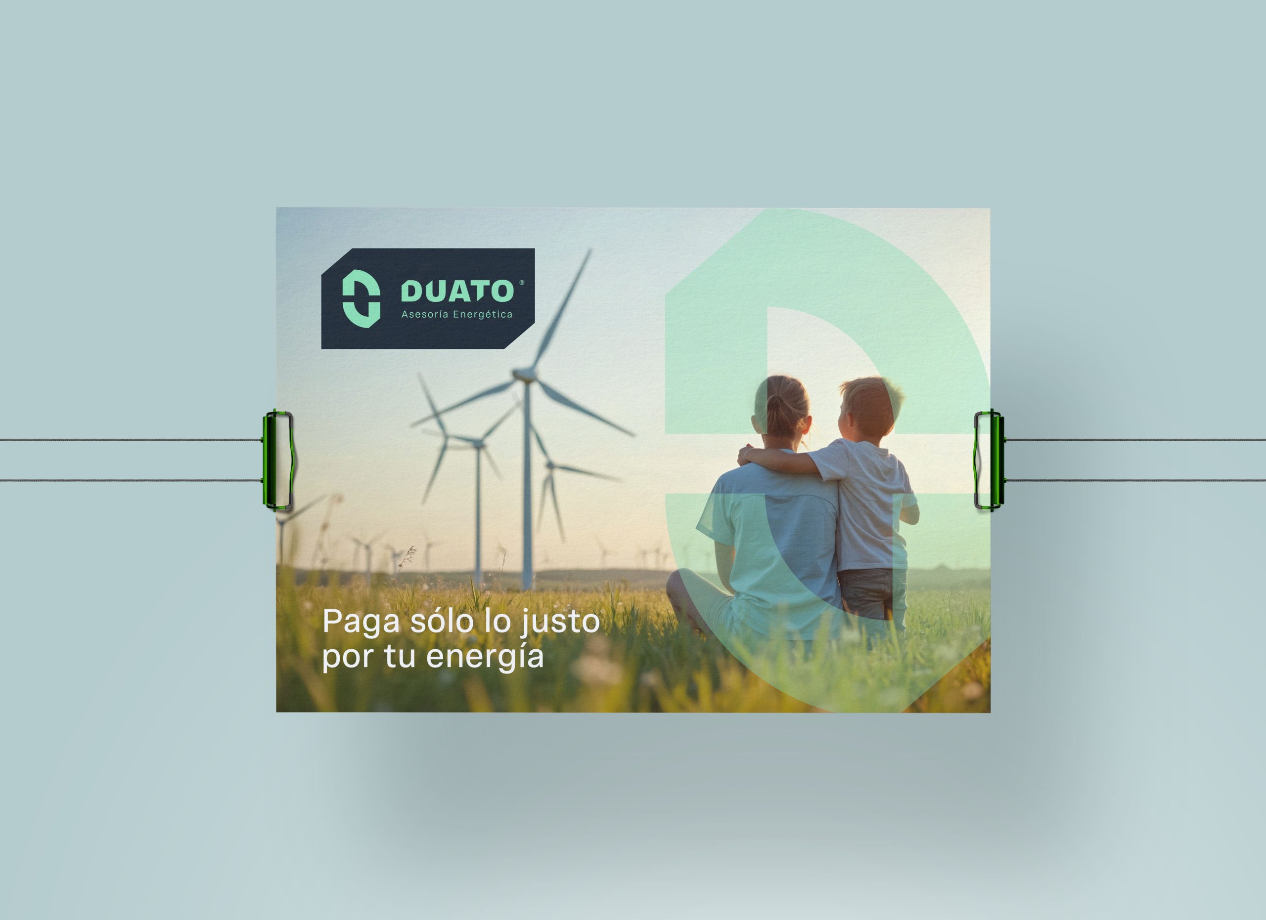 Duato necesitaba el diseño de una identidad corporativa actual, sólida y reconocible que le representara y le diera presencia en un sector cada vez más fuerte en el mercado. Un mercado plagado de empresas sin una buena estrategia visual. Nuestra misión fue crear una identidad corporativa que representa y transmite sus valores y personalidad, conectando emocionalmente con su target. En definitiva, una marca limpia, sólida y legible que es fácilmente reconocible, ayudando a la marca a posicionarse como una de las fuertes promesas en asesoría energética.